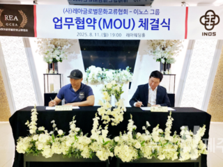 · 중앙 텍스트 (REA): 협회의 핵심 정체성을 나타내며, 검은색 서체로 전문성과 안정성을 강조.
