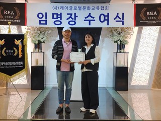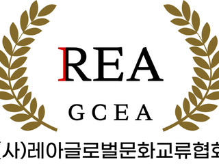 · 중앙 텍스트 (REA): 협회의 핵심 정체성을 나타내며, 검은색 서체로 전문성과 안정성을 강조.